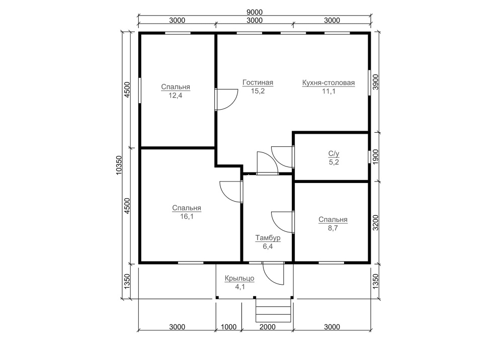 | Основание (обвязка) | Из обрезного бруса (100х150 мм. 150х150 мм. 150х200 мм. согласно выбранному сечению бруса). Обработка антисептиком. | |
