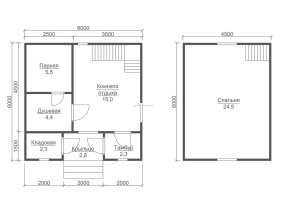 Популярные на данный момент размеры: мини - до 36 кв. М (в основном, 1-этажные бани); компактные - от 36м2 до 70 квадратов (обычно двухэтажные); большие постройки - от 70 м2 и больше.